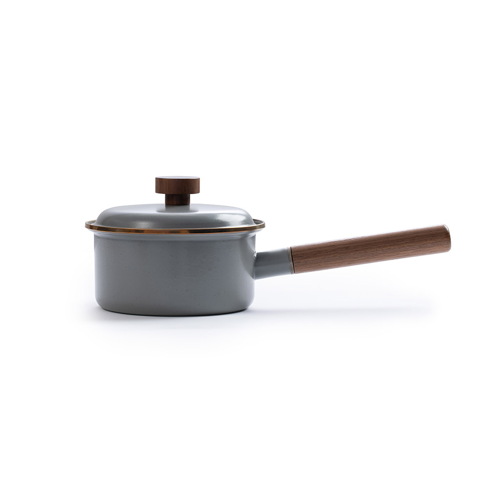ストーングレーのエナメルと縁はステンレスリムで補強され、カラーはアンティークカッパー色で施され、一点一点違った個性を持ちます。