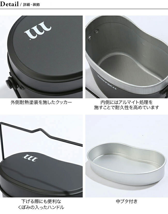 【 SPEC /製品仕様 】■ブランド名:MURACO■商品名:ライスクッカー■商品型番:—■カラー:グレー【C001】,ブラック【C007】(※グレーは焚き火や、炭を使用した調理では煤で真っ黒になりますので、キャンピングストーブなどの調理器具でのご使用をお勧めいたします。