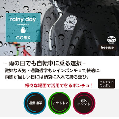 【あす楽(土日祝日も) 全国送料無料】GORIX ゴリックス ポンチョ レインコート 雨具 自転車 かっぱ レインポンチョ 完全防水 収納袋付き 男女兼用 通勤 通学 ハイスペック(AMAGU)