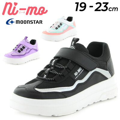 送料無料 キッズ スニーカー 女の子 子供靴/ムーンスター ニーモ moonstar ni-mo 21-24cm 2E幅 くつ/ダッドシューズ 厚底 ガールズ 小学生 カジュアル 抗菌防臭 かわいい くつ/NM-J065