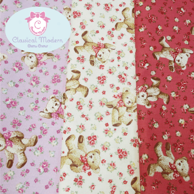 【オックス生地】フラワーベア【CLASSICAL MODERN クラシカルモダン 】【ベア 花 女の子 日本製 入園入学 通園 巾着 ポーチ エプロン 移動ポケット レッスンバッグ ファンシー フェアリー ハンドメイド 手づくり】