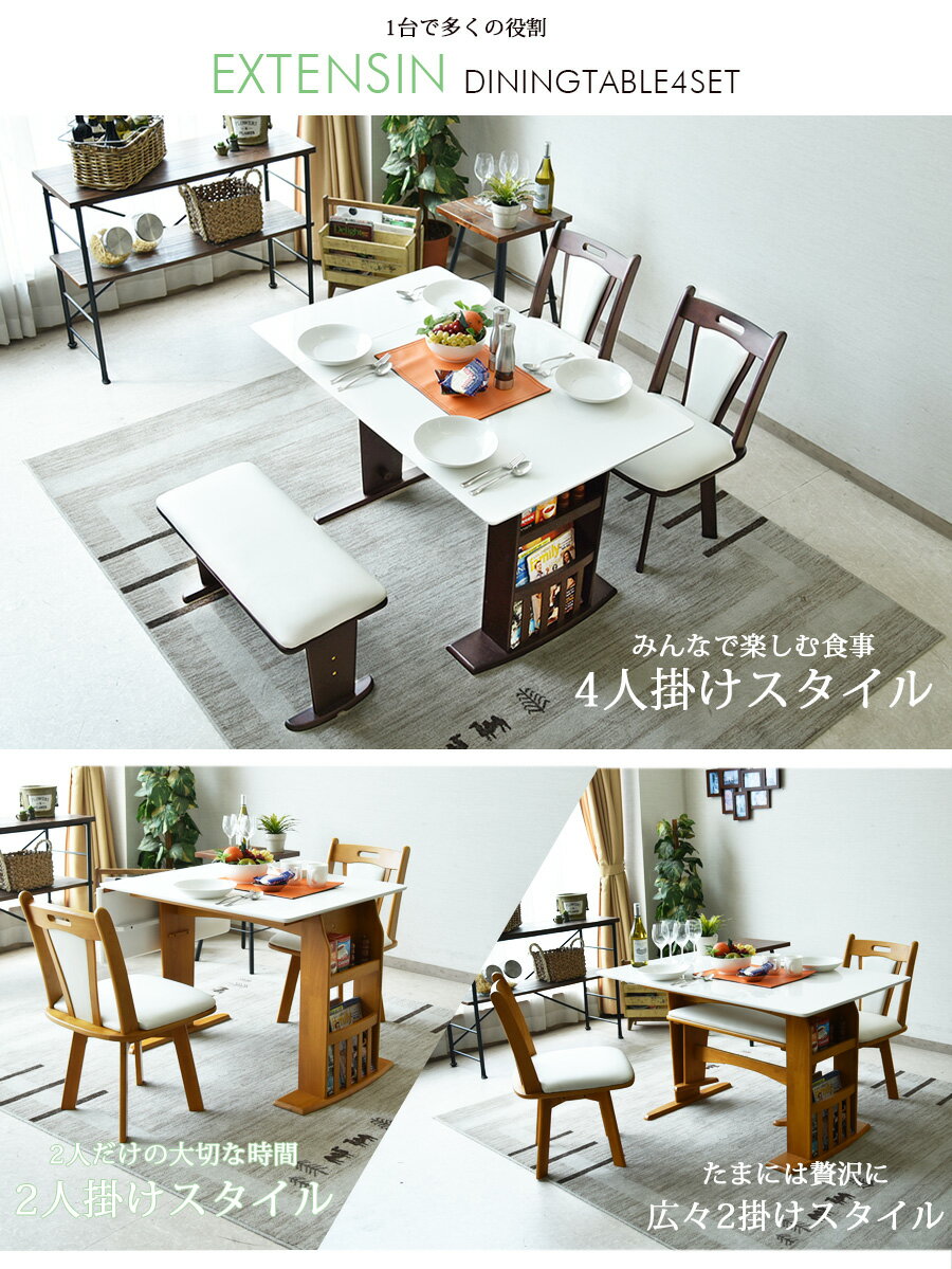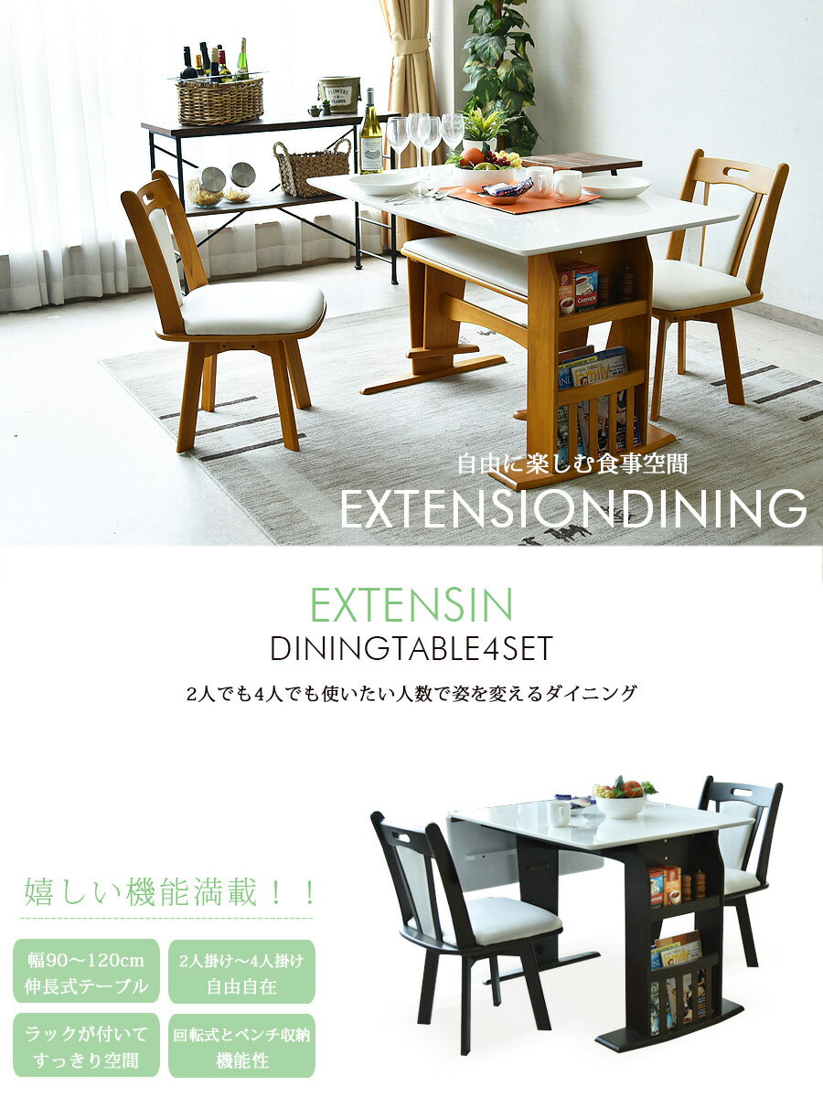 * ダイニングテーブルセット 4人掛け 90〜120cm ダイニングセット ダイニング4点セット 木製 伸縮式 レトロ モダン 収納付き ベンチ付き コンパクト バタフライ 食卓セット 2人掛け シンプル 北欧 家具通販 大川市 伸長