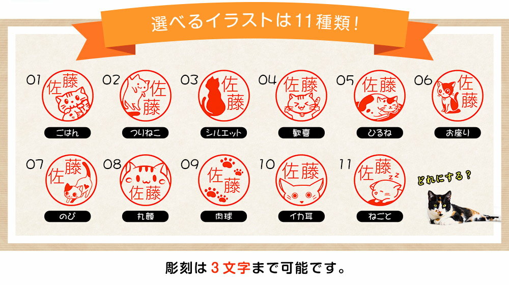ひとつあると重宝するおしゃれはんこ! ねこ好きの方、夫、妻、お友達、お子様、お孫さん、おじいちゃんやおばあちゃんへのプレゼントにも最適です! デザイン確認サービス 1案につき別途500円 メール若しくはFAXにて確認いただけます。
